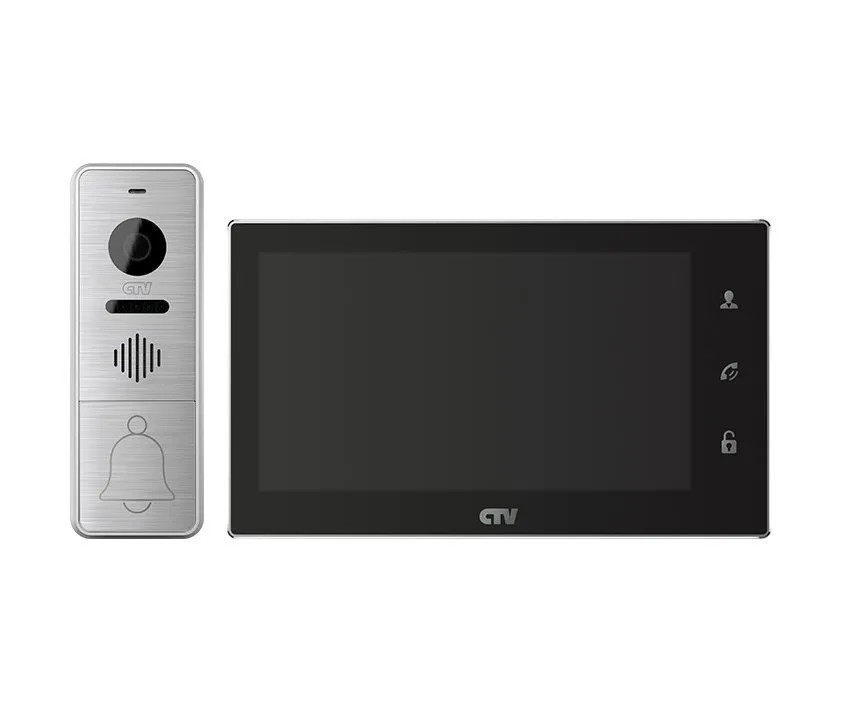 CTV-M4706AHD черный монитор видеодомофона с экраном с технологией Touch Screen для управления OSD, стеклянная сенсорная панель управления "Easy Buttons", цветной IPS дисплей диагональю 7 дюймов (17 см), поддержка форматов AHD, TVI, CVI и CVBS с разрешением 1080p/720p/960H, автоответчик, режим ожидания с индикацией времени, встроенный источник питания, функция автоматического определения формата видеосигнала, детектор движения, поддержка карт памяти до 64Gb, возможность подключения до 2-х вызывных панелей и до 2-х дополнительных охранных видеокамер, объединения до 4 мониторов в системе, Hands free, полудуплекс, габаритные размеры 192,5мм (Ш) х 112,8мм (В) х 19,8мм (Г), цвет черный