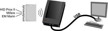 - EM-Marine, HID ProxCard II, Mifare, Mifare Plus, Mifare-UL (чтение/запись), Temic (чтение/запись), Cotag (опционально)